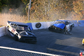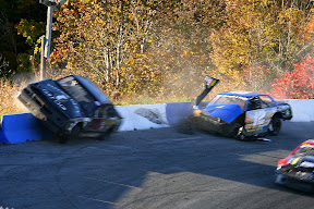 The TC race was violent...might be the best word for it, glad to hear your ok Jim...because you took a heck of a hit, and the "big one" was maybe the biggest wreck I have ever seen, as the 29 & 69 were arguing over space..both hit the outside wall and basically blocked the whole track...and the 17X came flying in...and just BLASTED right into the 69....I dunno if I have ever seen a car wrecked so bad from once crash as the 69...the front is basicly gone...and the back is completely gone!...I mean theres nothing left, and that wasn't all of it...atleast another 6-8 guys just piled into the wreck...as it looked like a demo derby had just finished off turn-4 as a whole wack of cars were all in a big pile.