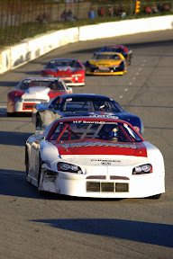 My wife was with me last night, and she took that pic during the feature. We were testing out a new zoom lens that has a huge aperture for low light sharp images and blurred backgrounds. She was practicing her panning through the corner at dusk. She was pretty happy to come out with that great shot. I definitely used the image on Rob's website. Sorry, we didn't get any other videos, other than the Late Models and Thunder Cars. :-